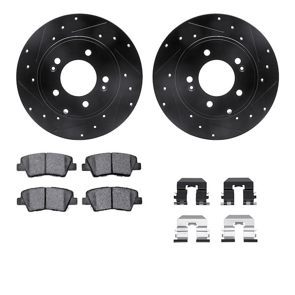 DFC Rotors-Drilled & Slotted-Black w/ 5000 Advanced Brake Pads Incl Hdw