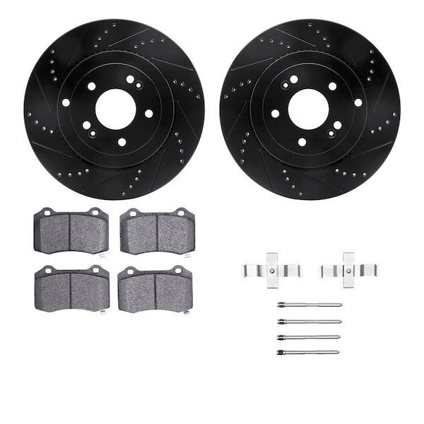 DFC Rotors-Drilled & Slotted-Black w/ 5000 Advanced Brake Pads Incl Hdw
