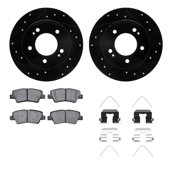DFC Rotors-Drilled & Slotted-Black w/ 5000 Advanced Brake Pads Incl Hdw