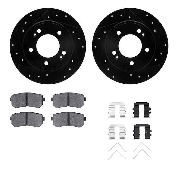 DFC Rotors-Drilled & Slotted-Black w/ 5000 Advanced Brake Pads Incl Hdw