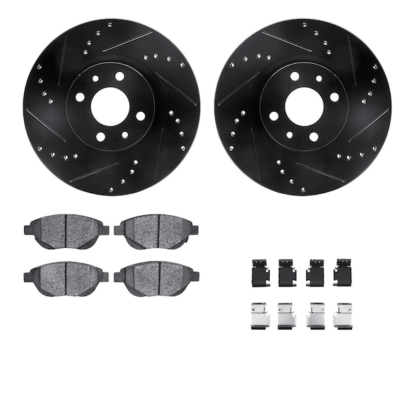 DFC Rotors-Drilled & Slotted-Black w/ 5000 Advanced Brake Pads Incl Hdw
