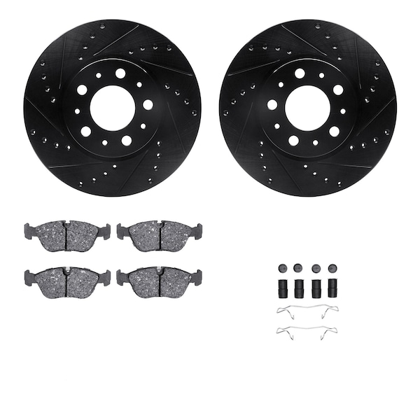 DFC Rotors-Drilled & Slotted-Black w/ 5000 Advanced Brake Pads Incl Hdw