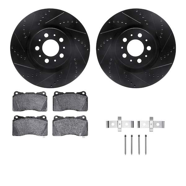 DFC Rotors-Drilled & Slotted-Black w/ 5000 Advanced Brake Pads Incl Hdw