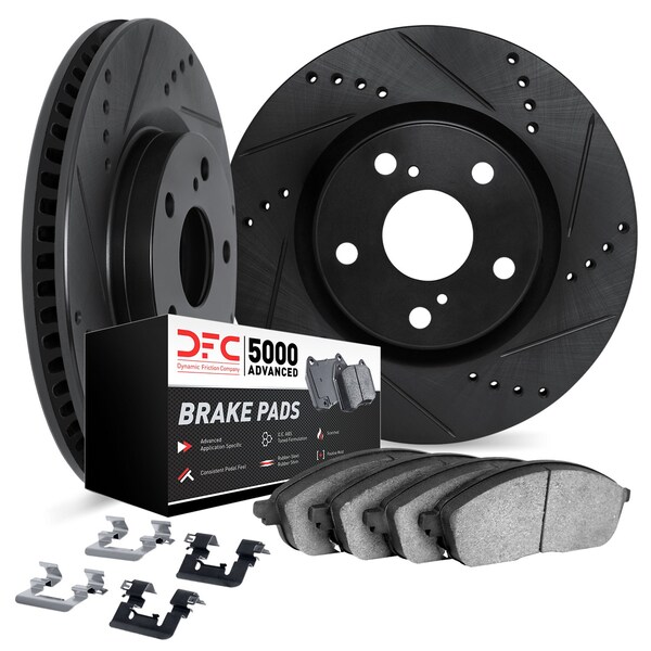 DFC Rotors-Drilled & Slotted-Black w/ 5000 Advanced Brake Pads Incl Hdw