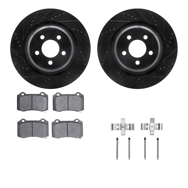DFC Rotors-Drilled & Slotted-Black w/ 5000 Advanced Brake Pads Incl Hdw