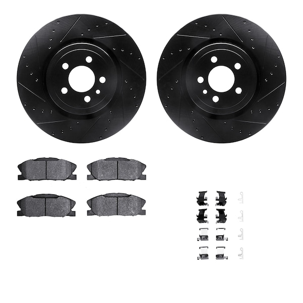 DFC Rotors-Drilled & Slotted-Black w/ 5000 Advanced Brake Pads Incl Hdw