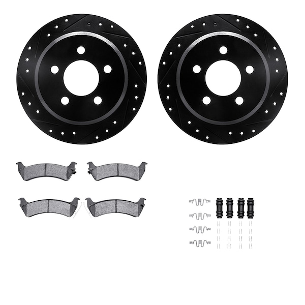 DFC Rotors-Drilled & Slotted-Black w/ 5000 Advanced Brake Pads Incl Hdw