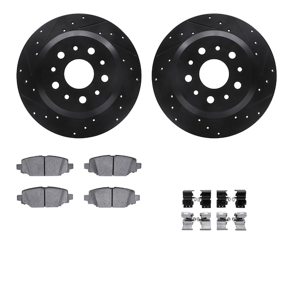 DFC Rotors-Drilled & Slotted-Black w/ 5000 Advanced Brake Pads Incl Hdw