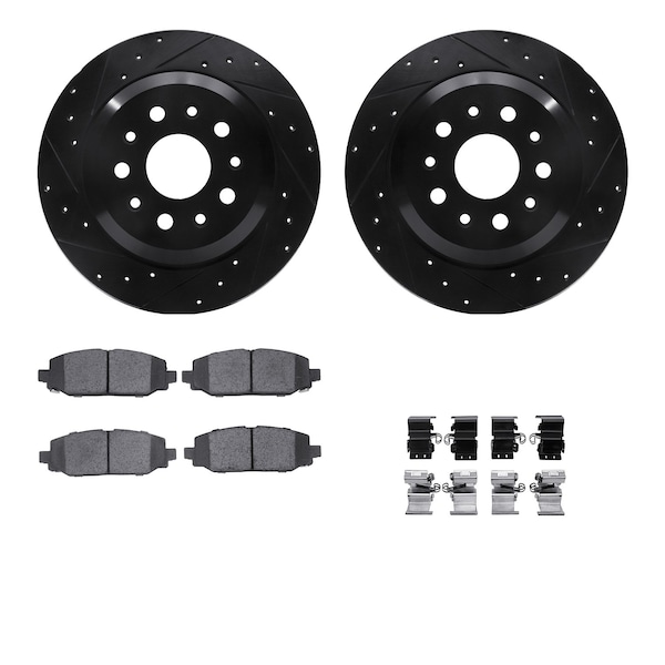 DFC Rotors-Drilled & Slotted-Black w/ 5000 Advanced Brake Pads Incl Hdw