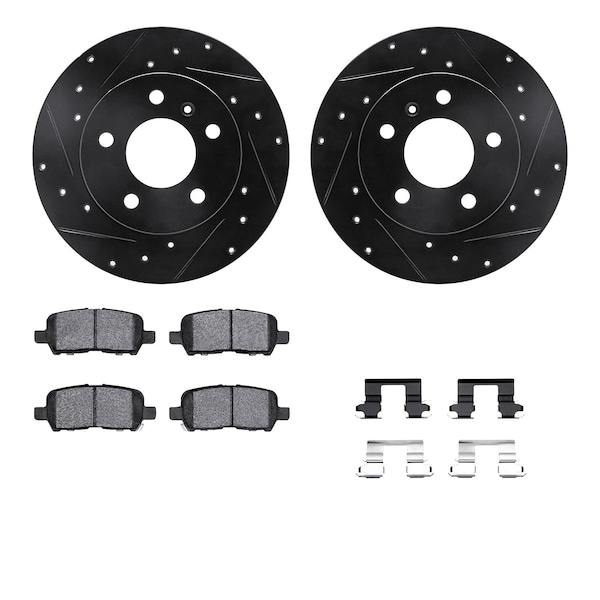 DFC Rotors-Drilled & Slotted-Black w/ 5000 Advanced Brake Pads Incl Hdw