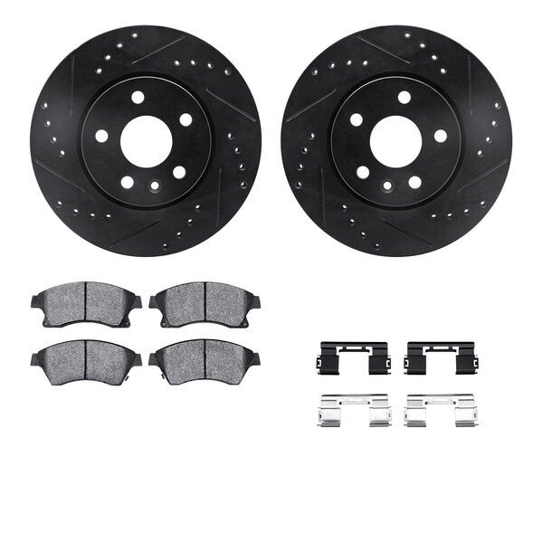 DFC Rotors-Drilled & Slotted-Black w/ 5000 Advanced Brake Pads Incl Hdw