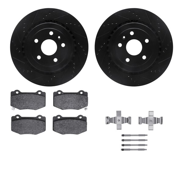 DFC Rotors-Drilled & Slotted-Black w/ 5000 Advanced Brake Pads Incl Hdw