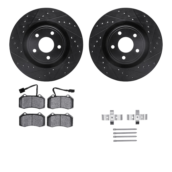 DFC Rotors-Drilled & Slotted-Black w/ 5000 Advanced Brake Pads Incl Hdw