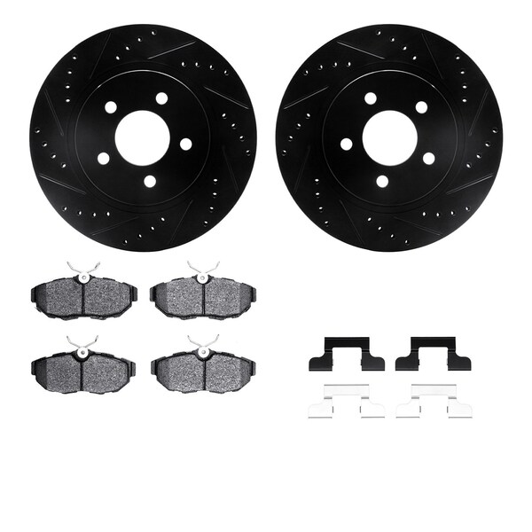 DFC Rotors-Drilled & Slotted-Black w/ 5000 Advanced Brake Pads Incl Hdw