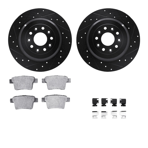 DFC Rotors-Drilled & Slotted-Black w/ 5000 Advanced Brake Pads Incl Hdw