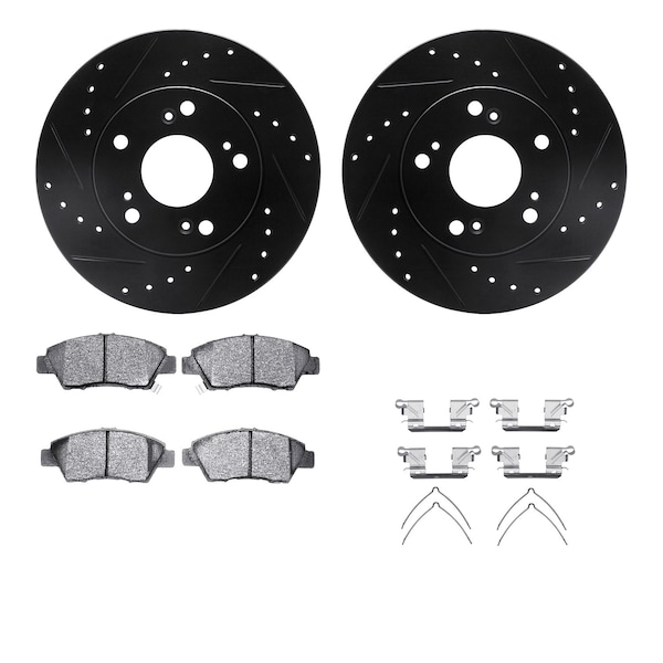 DFC Rotors-Drilled & Slotted-Black w/ 5000 Advanced Brake Pads Incl Hdw