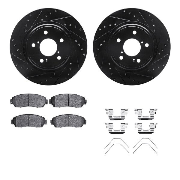 DFC Rotors-Drilled & Slotted-Black w/ 5000 Advanced Brake Pads Incl Hdw