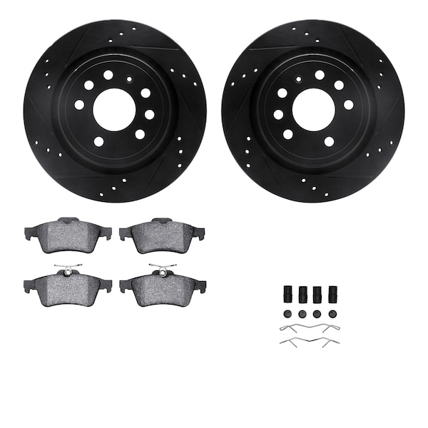 DFC Rotors-Drilled & Slotted-Black w/ 5000 Advanced Brake Pads Incl Hdw