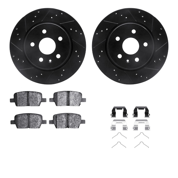 DFC Rotors-Drilled & Slotted-Black w/ 5000 Advanced Brake Pads Incl Hdw