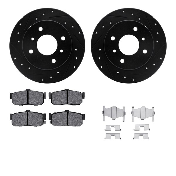 DFC Rotors-Drilled & Slotted-Black w/ 5000 Advanced Brake Pads Incl Hdw