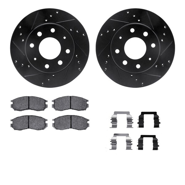 DFC Rotors-Drilled & Slotted-Black w/ 5000 Advanced Brake Pads Incl Hdw