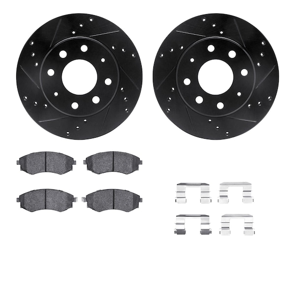 DFC Rotors-Drilled & Slotted-Black w/ 5000 Advanced Brake Pads Incl Hdw