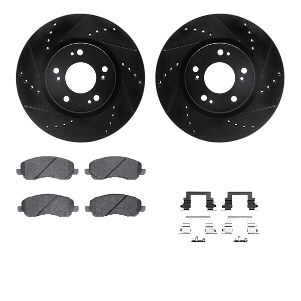 DFC Rotors-Drilled & Slotted-Black w/ 5000 Advanced Brake Pads Incl Hdw