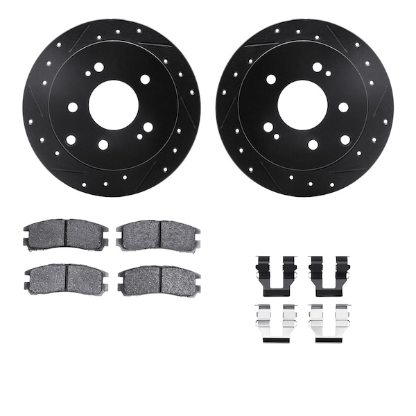 DFC Rotors-Drilled & Slotted-Black w/ 5000 Advanced Brake Pads Incl Hdw