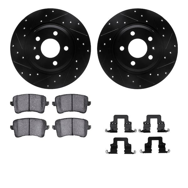 DFC Rotors-Drilled & Slotted-Black w/ 5000 Advanced Brake Pads Incl Hdw