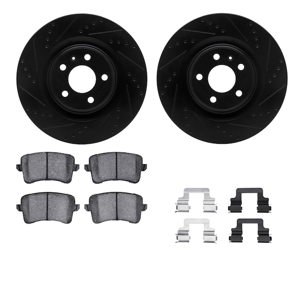 DFC Rotors-Drilled & Slotted-Black w/ 5000 Advanced Brake Pads Incl Hdw