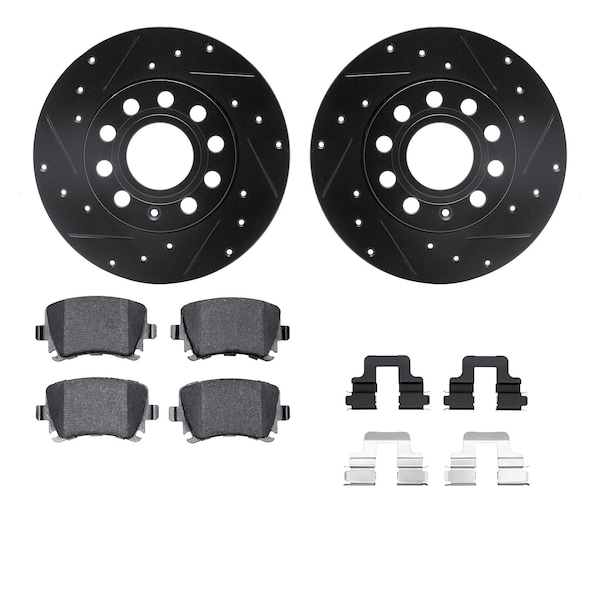 DFC Rotors-Drilled & Slotted-Black w/ 5000 Advanced Brake Pads Incl Hdw