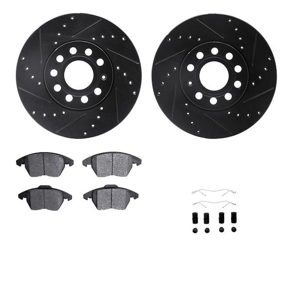 DFC Rotors-Drilled & Slotted-Black w/ 5000 Advanced Brake Pads Incl Hdw