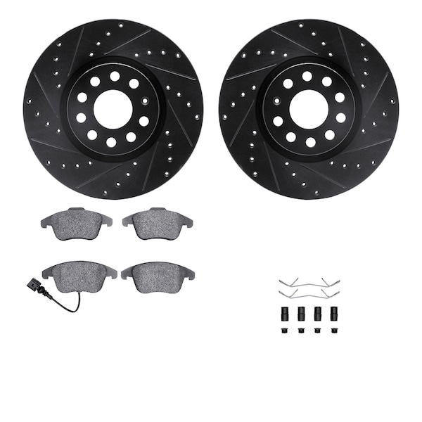 DFC Rotors-Drilled & Slotted-Black w/ 5000 Advanced Brake Pads Incl Hdw