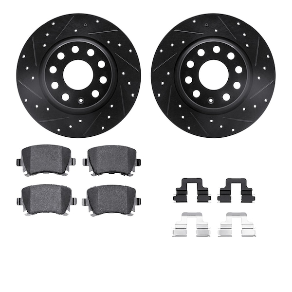 DFC Rotors-Drilled & Slotted-Black w/ 5000 Advanced Brake Pads Incl Hdw