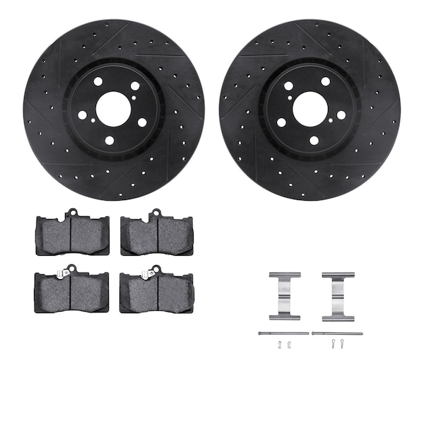 DFC Rotors-Drilled & Slotted-Black w/ 5000 Advanced Brake Pads Incl Hdw