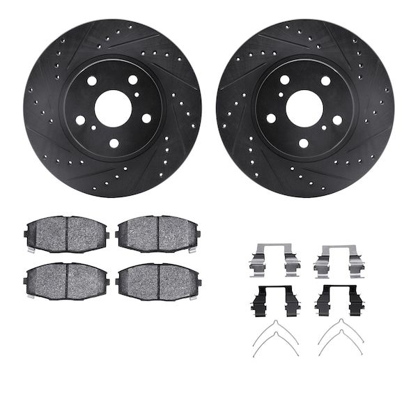 DFC Rotors-Drilled & Slotted-Black w/ 5000 Advanced Brake Pads Incl Hdw