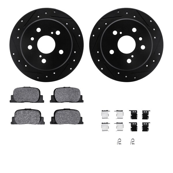 DFC Rotors-Drilled & Slotted-Black w/ 5000 Advanced Brake Pads Incl Hdw