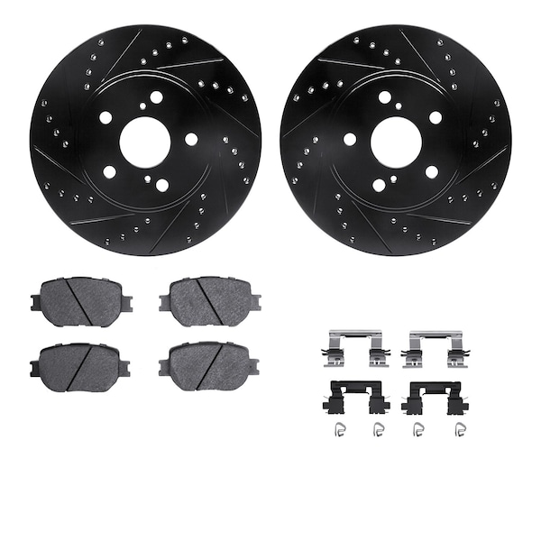 DFC Rotors-Drilled & Slotted-Black w/ 5000 Advanced Brake Pads Incl Hdw