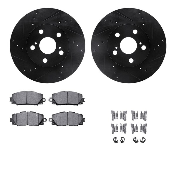 DFC Rotors-Drilled & Slotted-Black w/ 5000 Advanced Brake Pads Incl Hdw