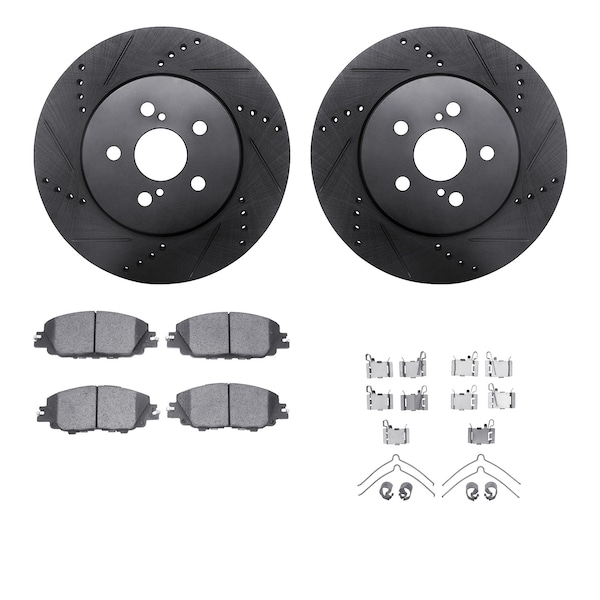 DFC Rotors-Drilled & Slotted-Black w/ 5000 Advanced Brake Pads Incl Hdw