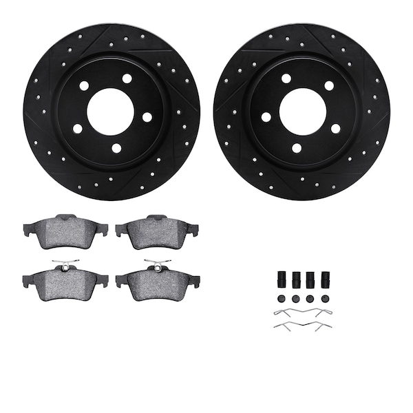 DFC Rotors-Drilled & Slotted-Black w/ 5000 Advanced Brake Pads Incl Hdw