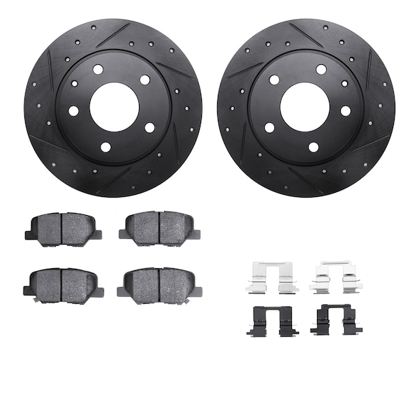 DFC Rotors-Drilled & Slotted-Black w/ 5000 Advanced Brake Pads Incl Hdw