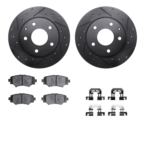 DFC Rotors-Drilled & Slotted-Black w/ 5000 Advanced Brake Pads Incl Hdw