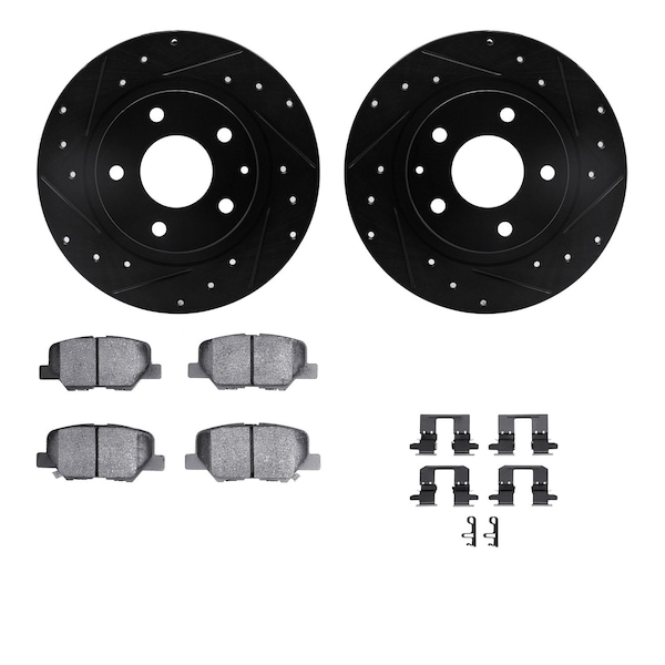 DFC Rotors-Drilled & Slotted-Black w/ 5000 Advanced Brake Pads Incl Hdw