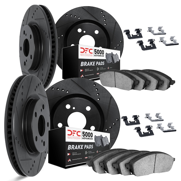 DFC Rotors-Drilled & Slotted-Black w/ 5000 Advanced Brake Pads Incl Hdw