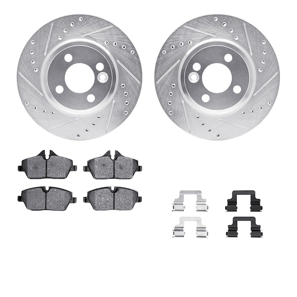 DFC Rotors-Drilled & Slotted-Silver w/ EURO 5000 Ceramic Brake Pads Incl Hdw
