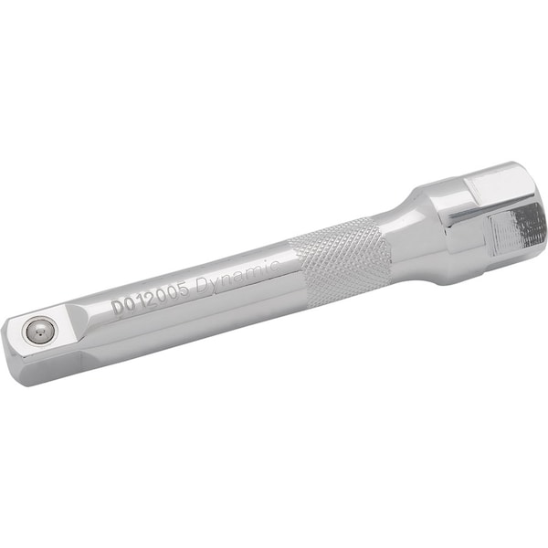 Length: 5". 1/2" Drive. Provides the added reach needed to access fasteners in tight spaces. Chrome finish for maximum resistance against corrosion. Knurled surface for easy mounting and removal from sockets and ratchets. Notches ensure a safe and secure lock to any ratchet, while a spring-loaded ball locks onto any 1/2" Drive socket.