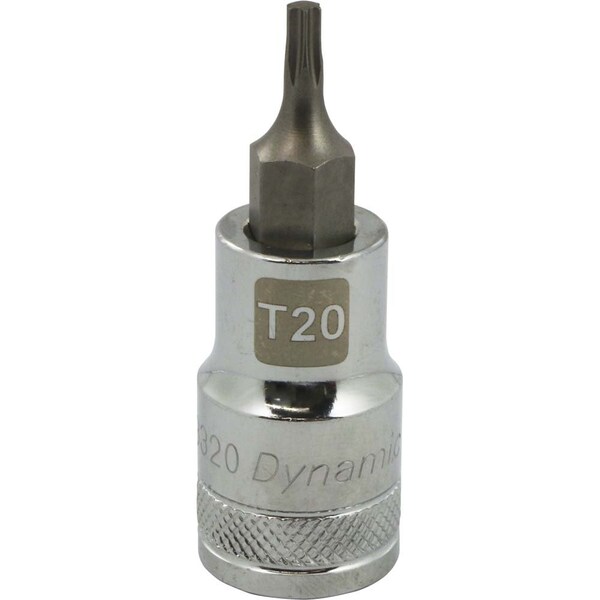 Size: T20. Bit length (inches): 0.94. Chrome finish for maximum resistance against corrosion. Laser etched markings improve size identification and provide differentiation between SAE and metric sizes. Brand, part number and size also hard stamped. Knurled ring provides superior grip for quicker and easier removal of socket from ratchets and attachments. Meets ANSI standards.
