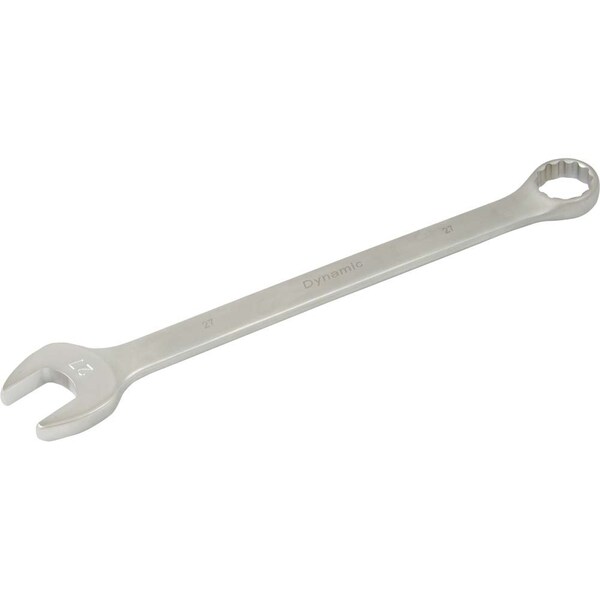 Size: 27mm. Drive Type: 12 Point. Size hard stamped at the open end for quick size identification. Satin chrome finish. 15° angled open and 15° offset boxed end. Meets ANSI standards.