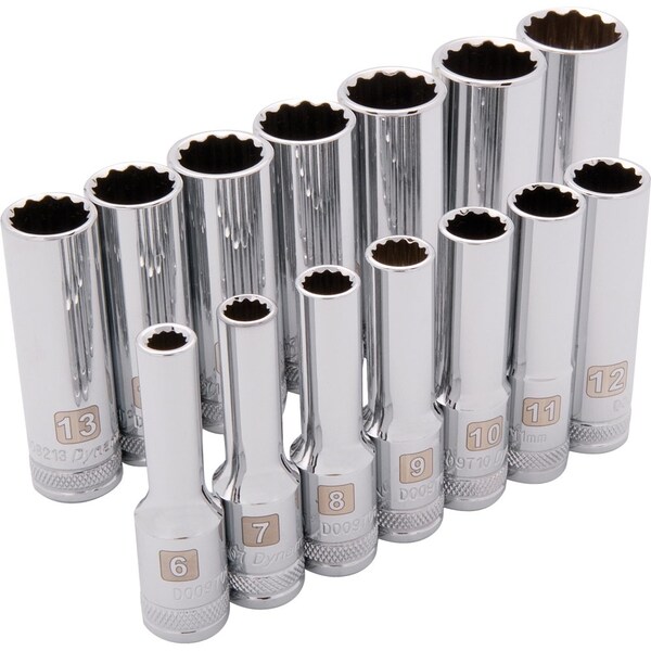 Tools 3/8" Drive 14 Piece 12 Point, Deep Metric Socket Set, 6mm - 19mm